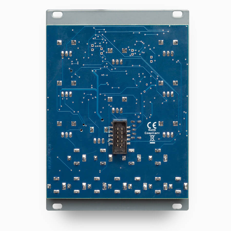 22 mm deepWe have not limited ourselves to features, of course: Signal path is key to making a filter sound fantastic. A fully discrete, low noise, low distortion audio path is used throughout the circuitry. And we designed it to saturate at exactly the point our experience has taught us responds best, and works well with other modules. When approaching 8V PP (Peak-to-Peak), the filter will create an awesome creamy and compressed sound that bends and evolves ever more as you push the input signal harder. And yet at lower signal levels, low distortion discrete buffers ensure the overall distortion of the signal is quite low, enabling a very clean sine wave when the filter is self-oscillating a little.